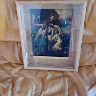 Ramme med glass til oppbevaring av gammelt klenodium. Laget av Eik og behandlet med Dansk Treolje.